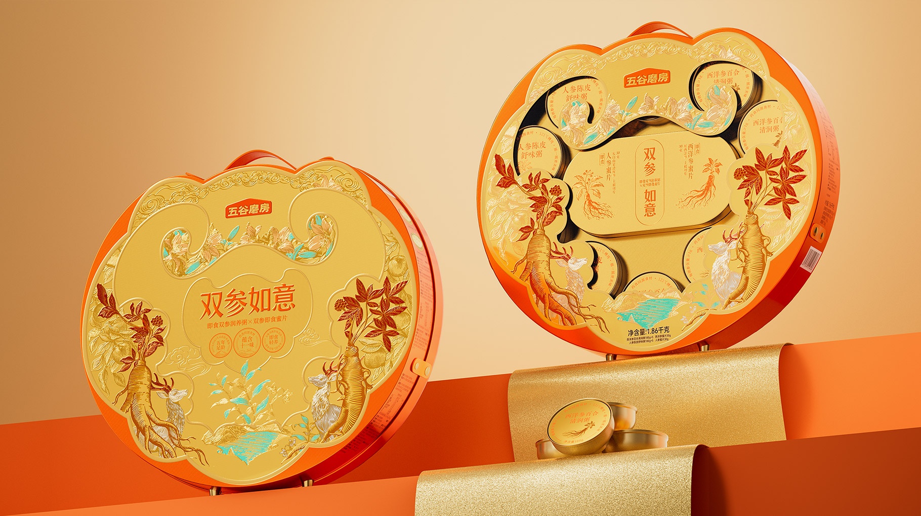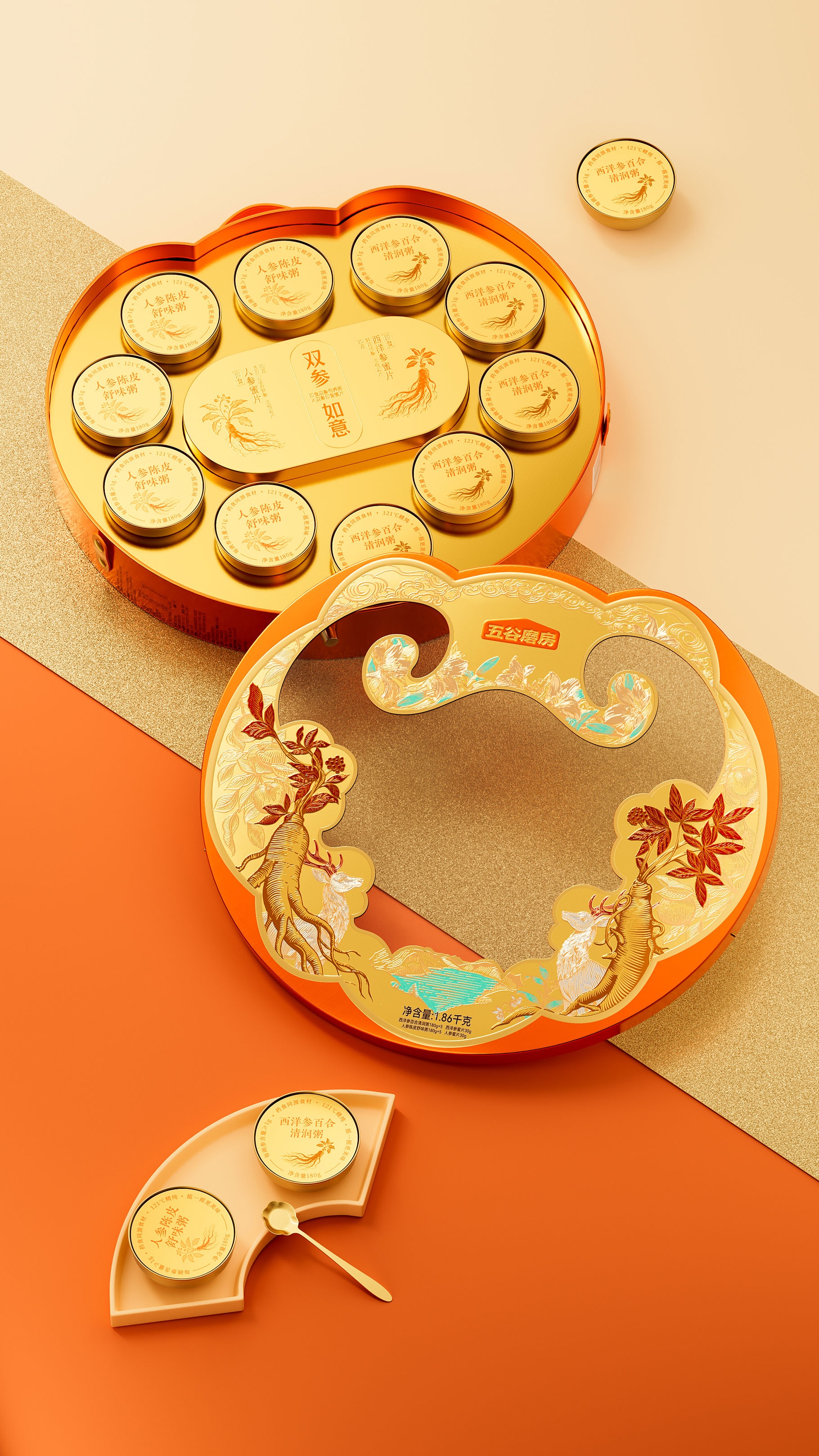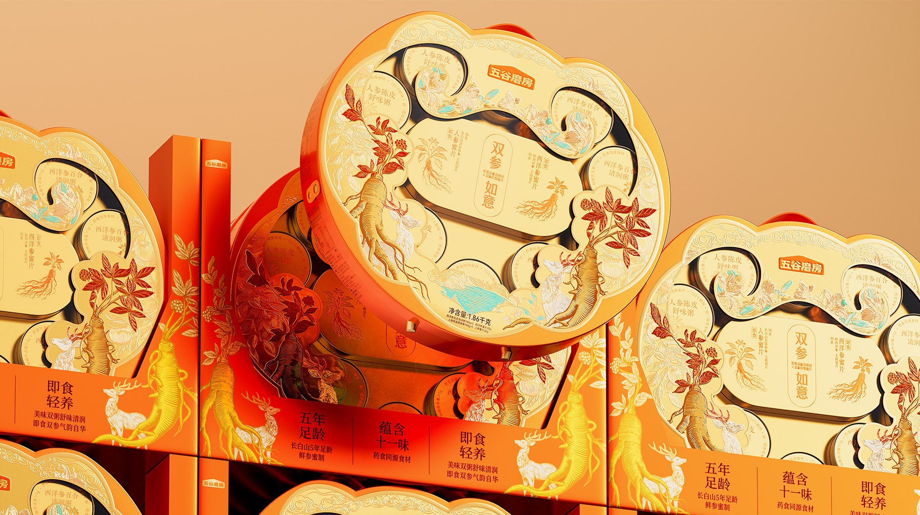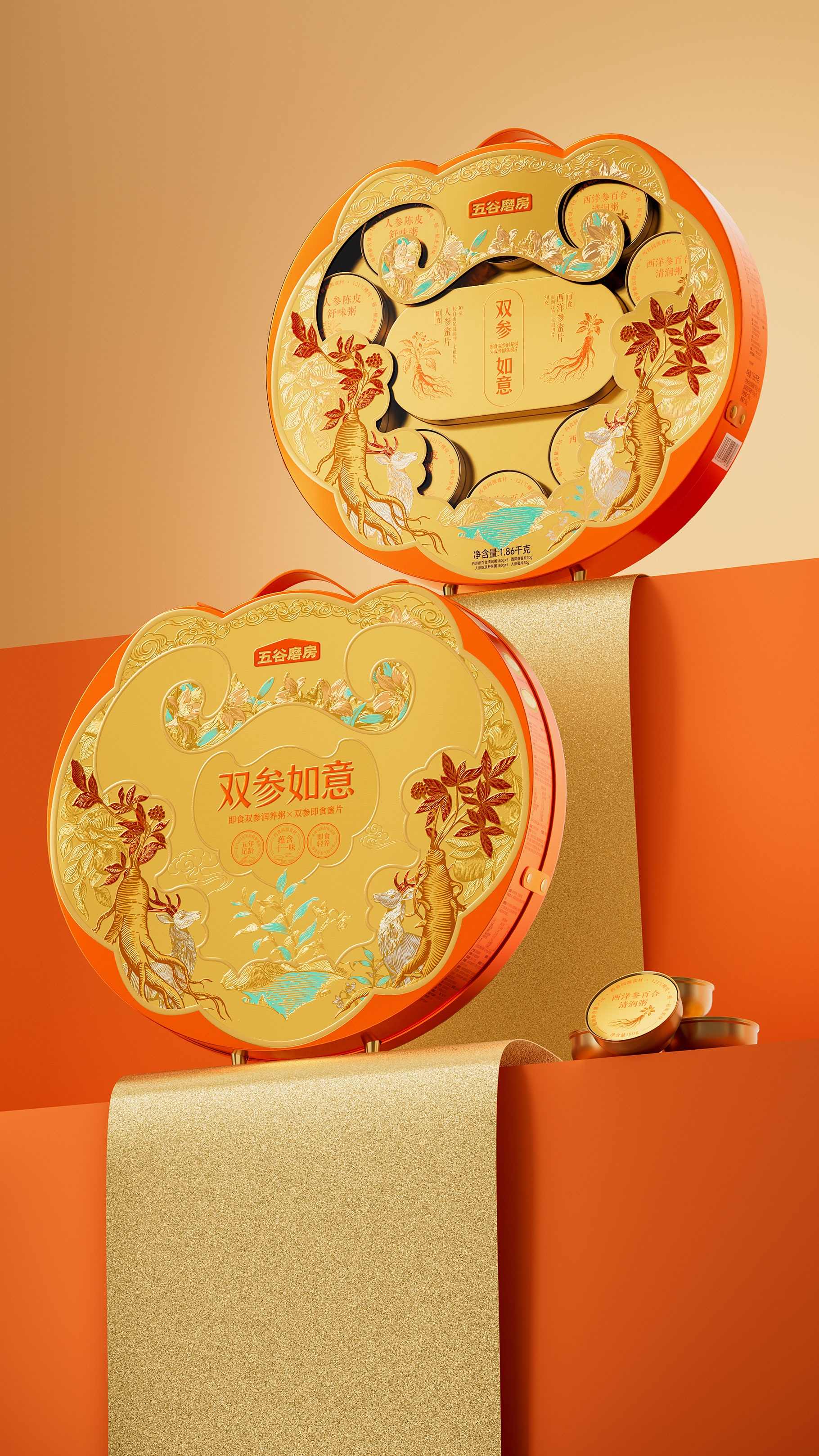 ?五谷磨房,雙參如意禮盒設計,山姆新年禮盒設計