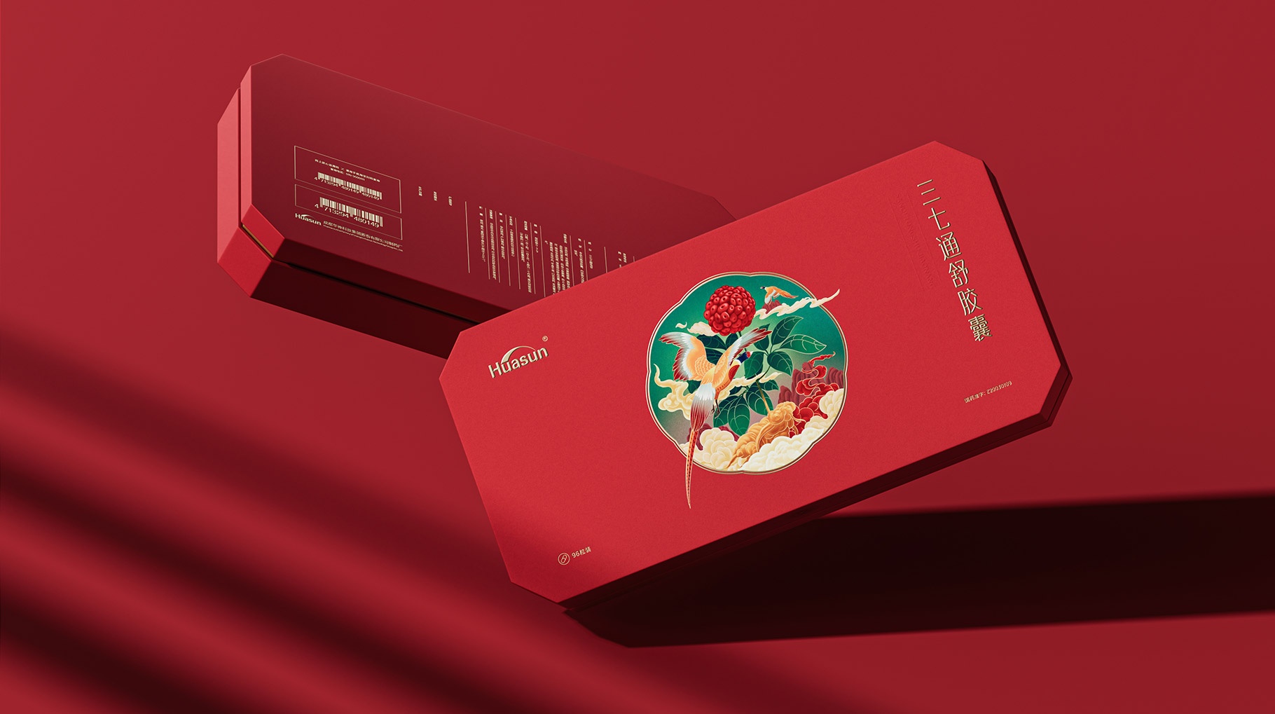 本次同道受成都華神科技集團股份有限公司委托進行三七通舒膠囊禮盒產品包裝設計,本案合作核心的目的是改變消費者對三七通舒膠囊傳統中藥的印象,讓中醫養生文化更好融入大眾生活,并更好的為讓消費者理解三七中藥品牌的文化及價值認知。