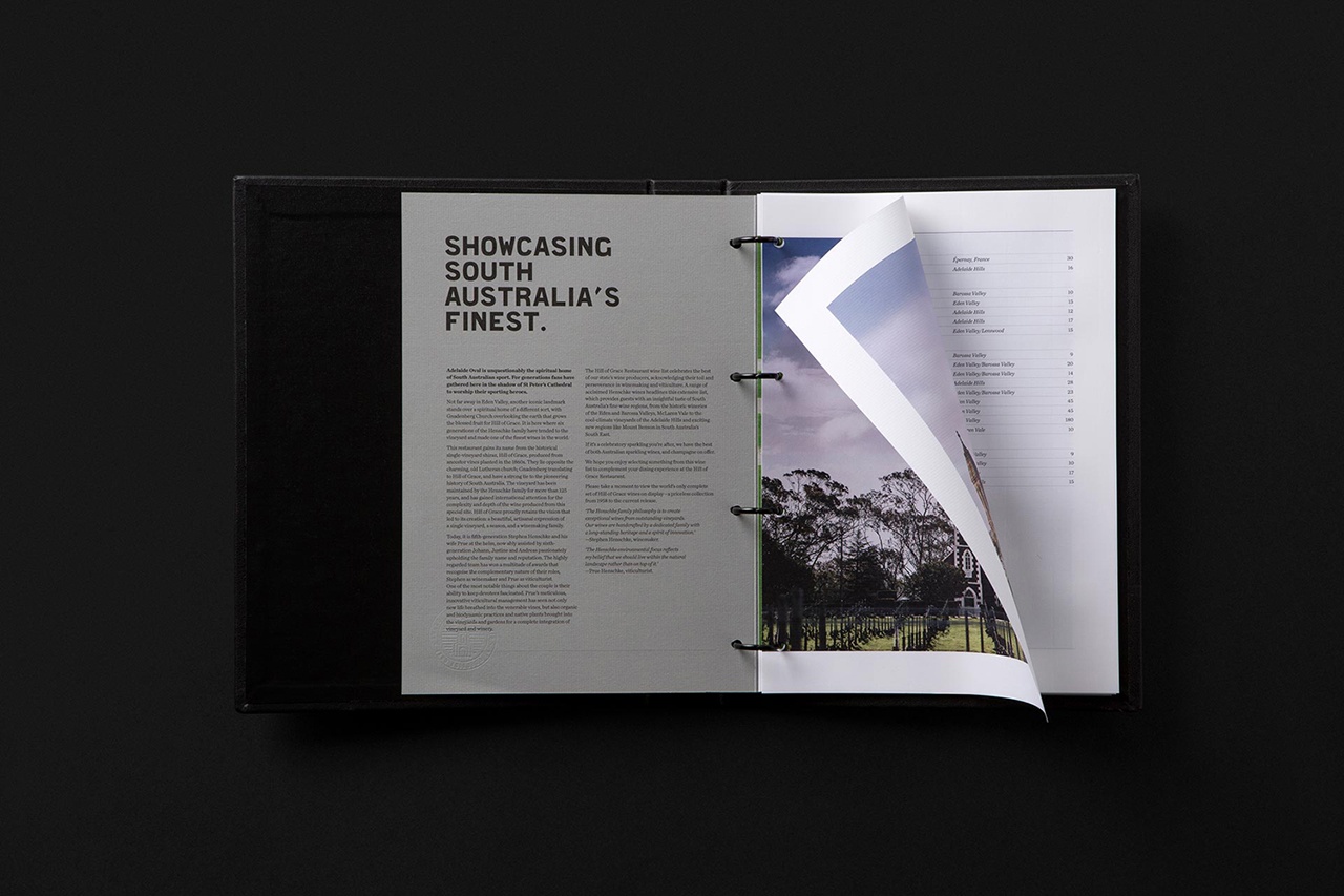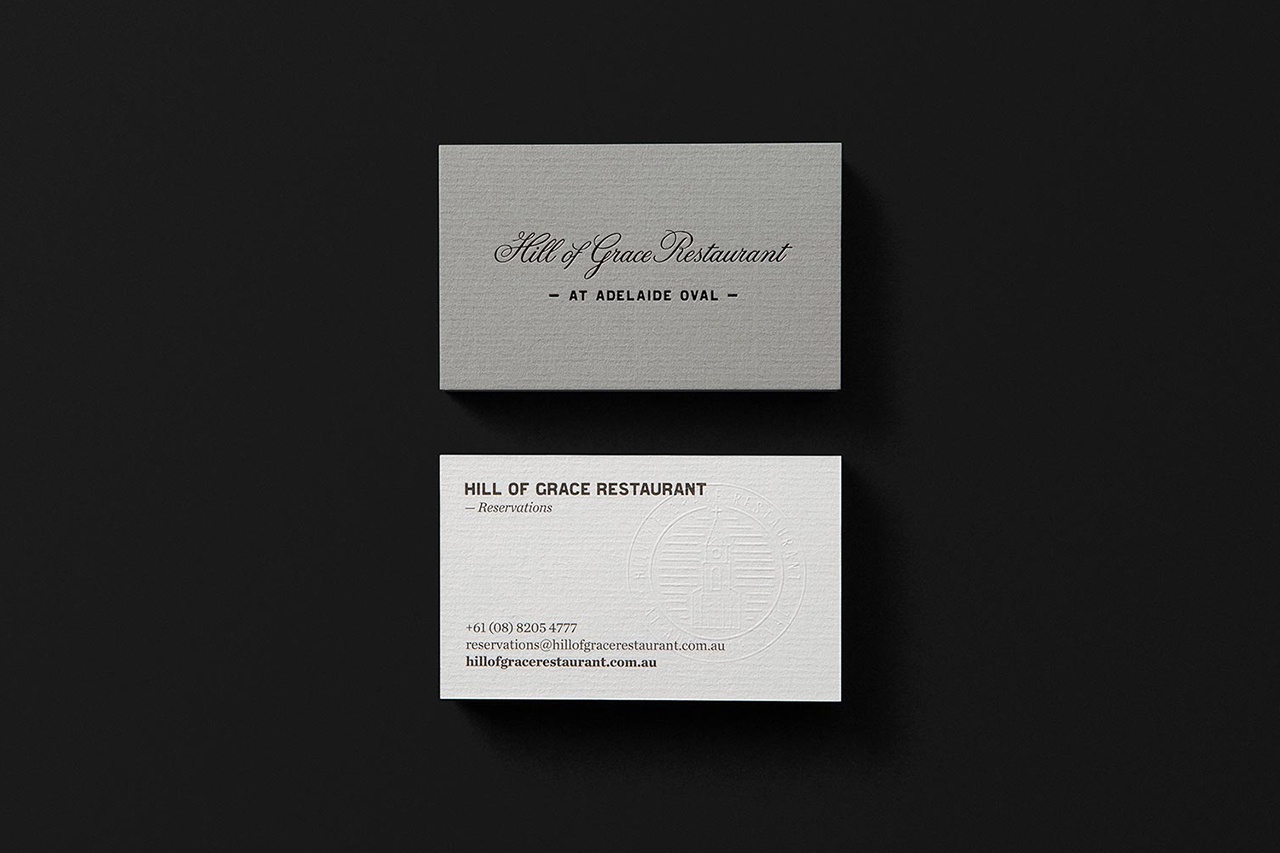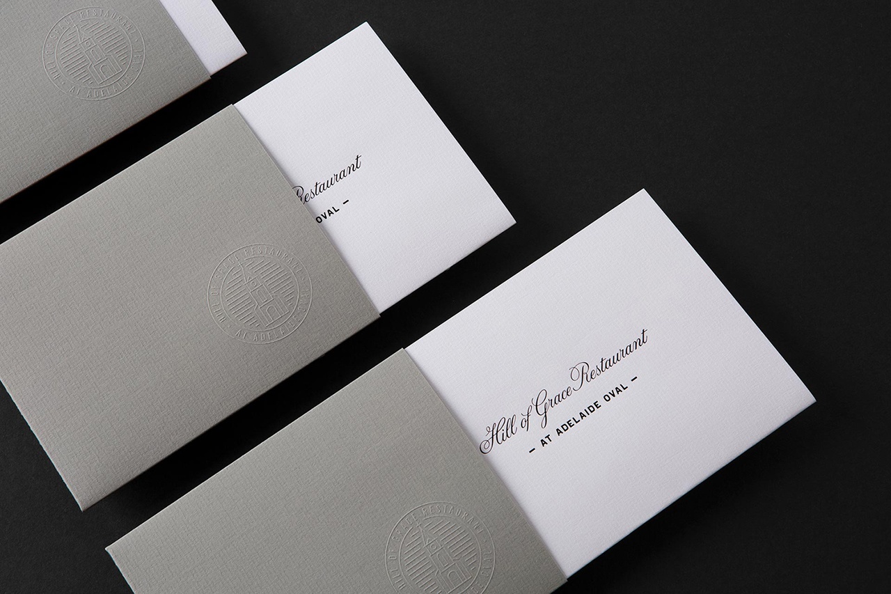 Hill of Grace Restaurant餐廳 由著名的澳大利亞 葡萄酒制造商 Henschke創(chuàng)建, 位于歷史悠久的阿德萊德橢圓形體育場。為了提升經(jīng)驗(yàn),Henschke與設(shè)計(jì)工作室Band合作開發(fā)了一種新的品牌標(biāo)識(shí),與其食品和葡萄酒的質(zhì)量相匹配,并與品牌Henschke葡萄園的根源建立了更緊密的聯(lián)系。這是通過攝影探索,具有自定義字體 和重繪標(biāo)識(shí),并包括 菜單,文具,邀請(qǐng)和名片的設(shè)計(jì),具有強(qiáng)大的材料質(zhì)量,使用鋪設(shè)紙,紋理表面和盲壓花和黑色塊箔細(xì)節(jié)。